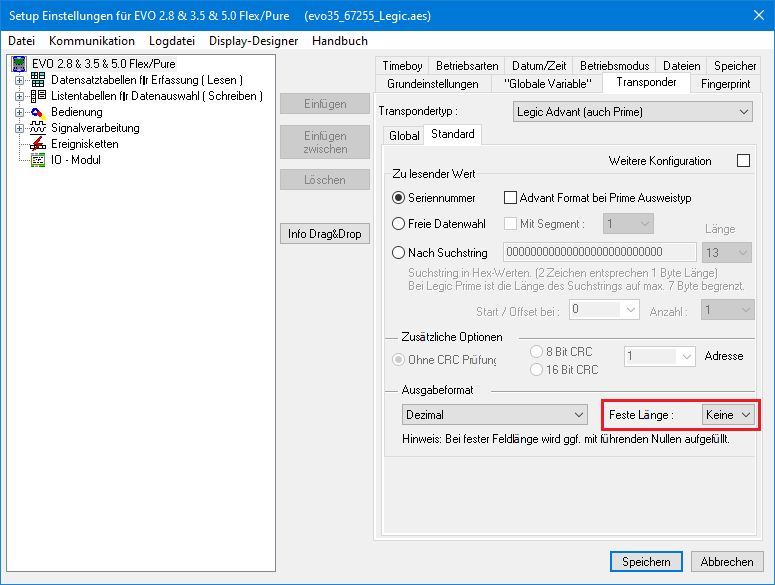 + Gerät richtig konfigurieren (Leser/RFID Chiptyp) > ... Rechts Register "Transponder"